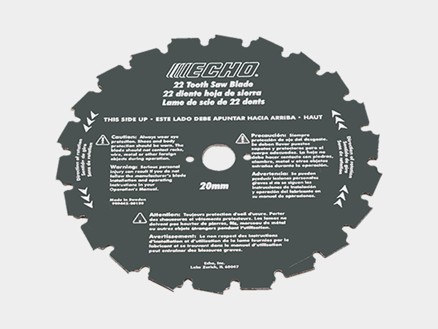 ECHO's 8 in., 22-Tooth Brush Blade is best suited for clearing and cutting brush and saplings up to 2.25 in. in diameter.
